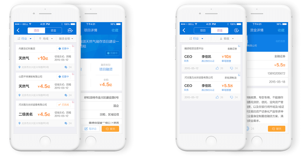 为企业提供融资渠道,为用户提供发展项目,是一款p2p理财应用,用户可以直接和项目管理对话了解项目详情,在线查看资金状态