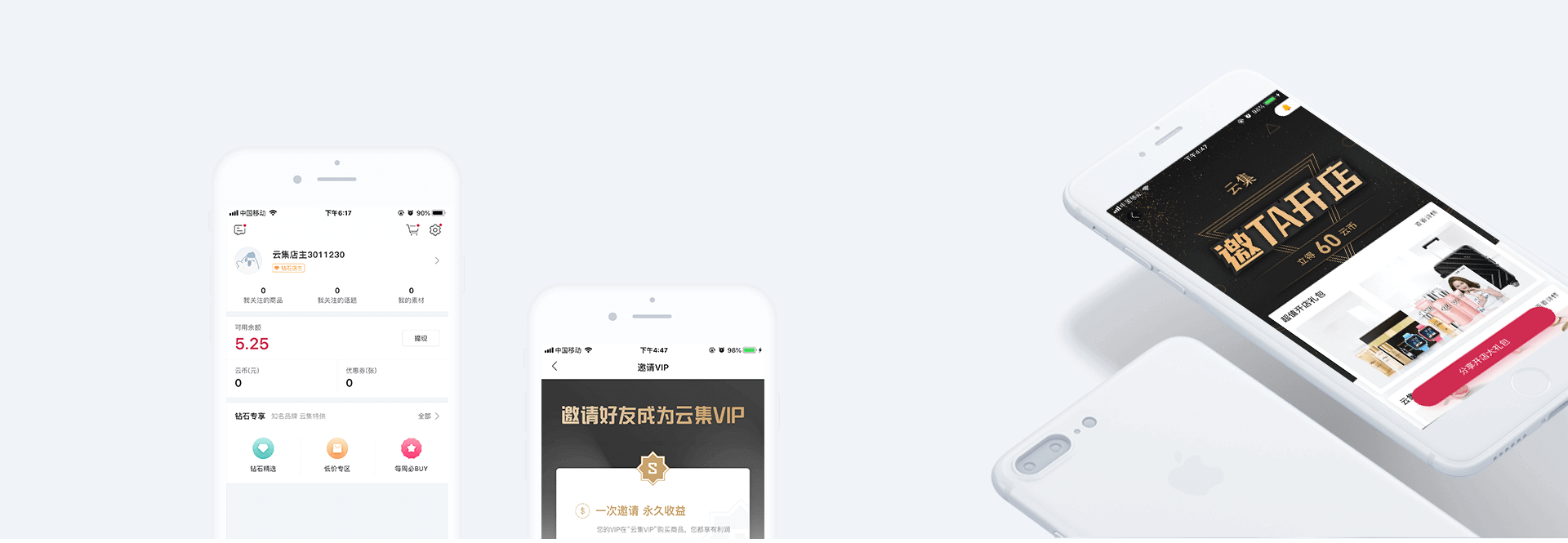 云集是一款在移动端开店的App,为店主提供美妆个护、母婴用品、食品保健、家居生活等上万种正品货源,并有海量商品图文,手把手培训